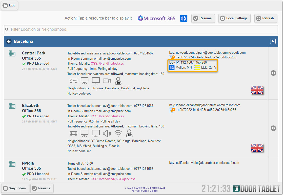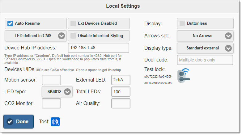 Note: when you open a room, the IP address and the UID set in the device hub will become available to the Local Settings, and you will not need to retype these.