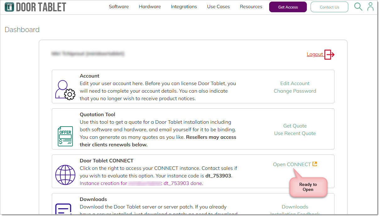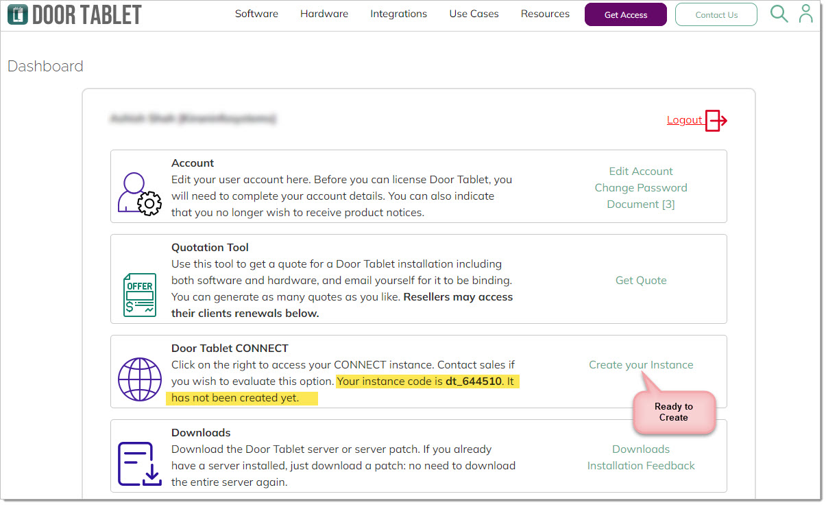 Once your instance is approved you will see this on the Door Tablet dashboard: