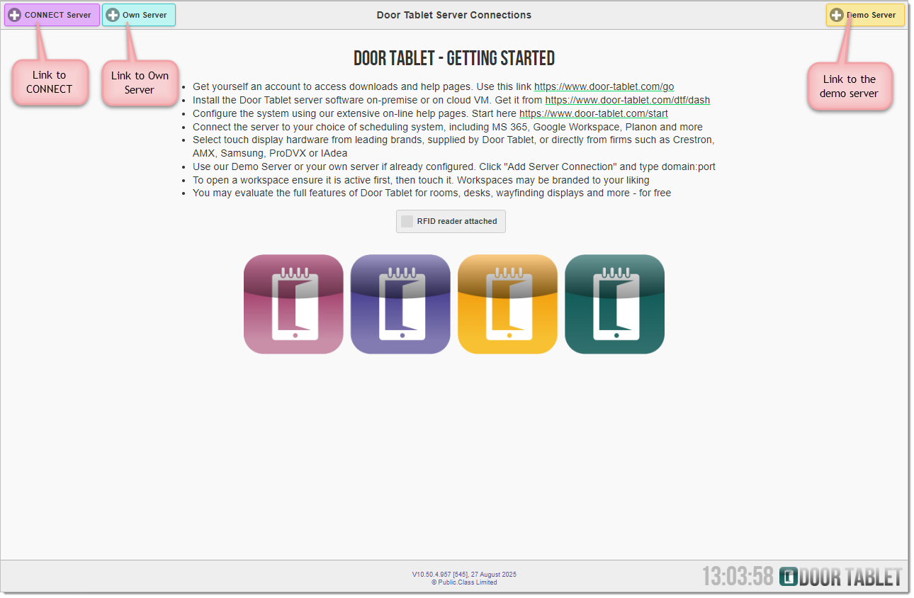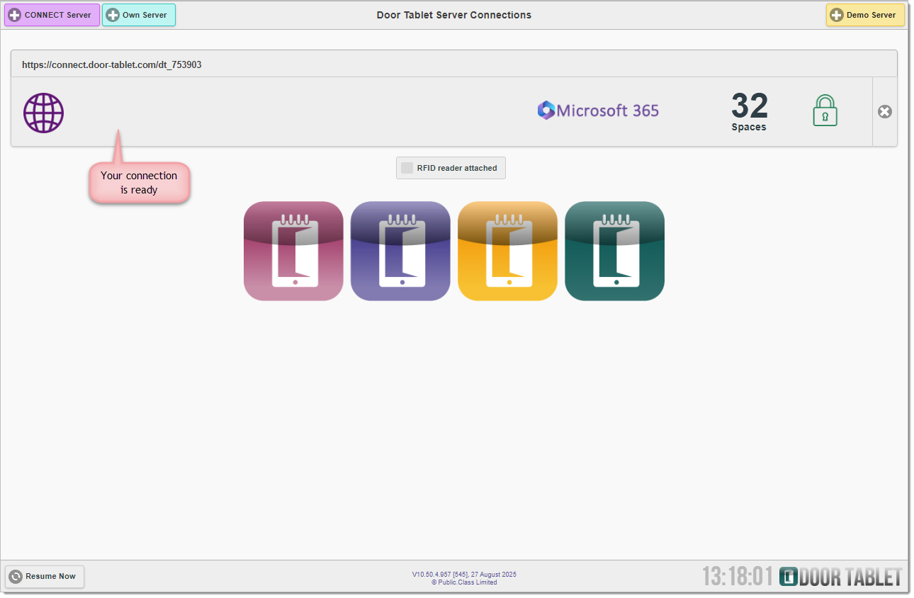 A Door Tablet client can connect to your Door Tablet instance on CONNECT in a similar way you will connect to any other Door Tablet server. There are some important differences: