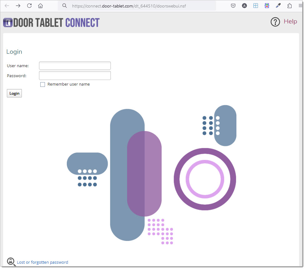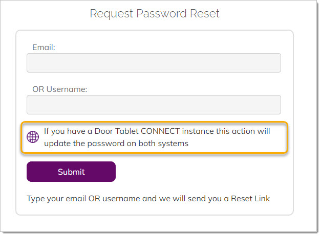 Note: your username and password are the same for both your Door-Tablet.com account and your Door Tablet CONNECT account.