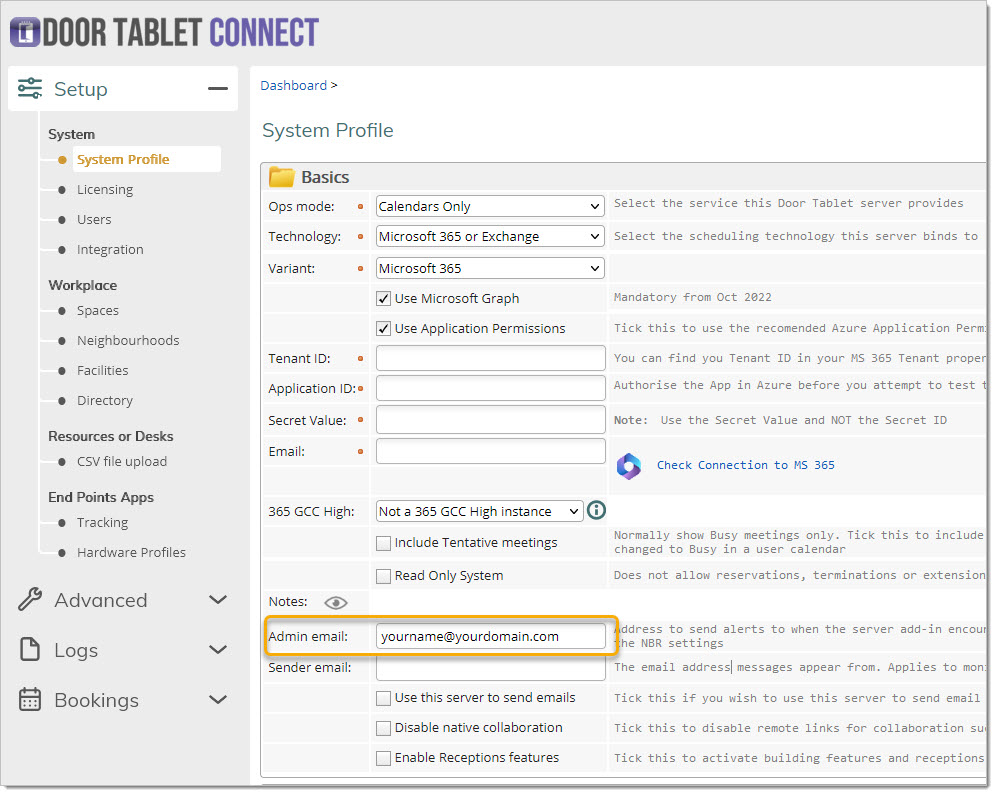 Before you continue you need to open the Web UI and update the system profile. You will not be able to connect end-points to your instance before you do so. You will need to update two key items.