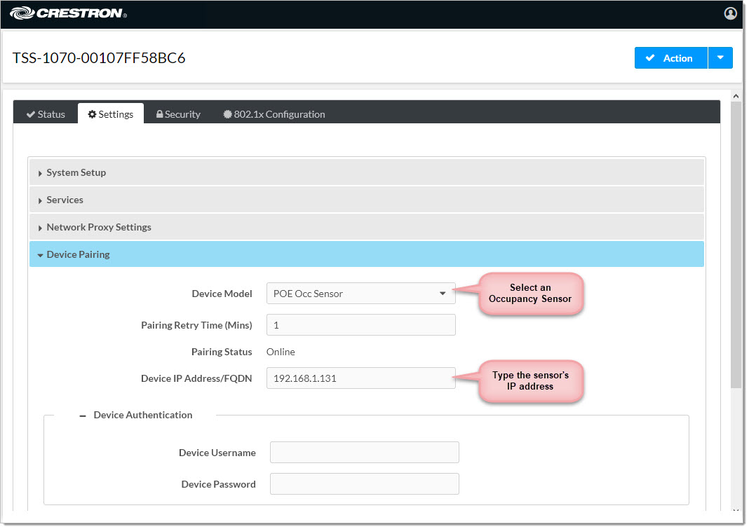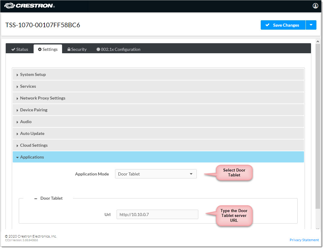 10.0.10, Door Tablet can run directly on Crestron display hardware. This version also supports pairing with Crestron motion sensors, allowing full integration with Door Tablet’s occupancy-based features.
