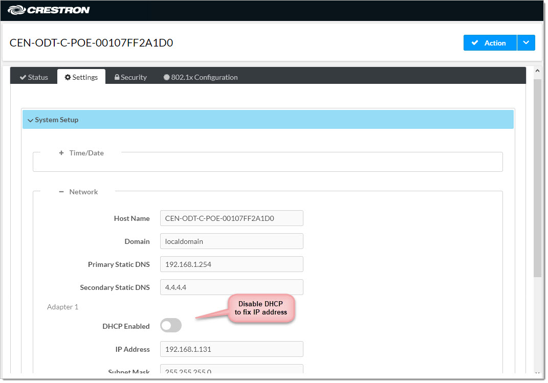 Note: it is recommended that the IP of the sensor is set to be fixed. The display device IP address may remain dynamic.