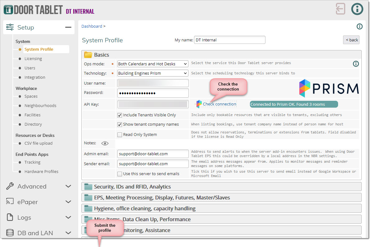 From V10.20 Door Tablet connects to Building Engine's PRISM.